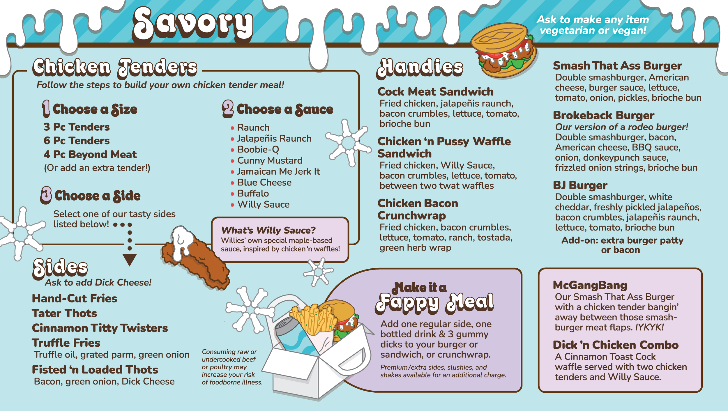 Willies Savory Menu – Chicago’s Most Outrageous Fried Chicken & Smashburgers
